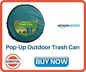 Ed and I recommend this collapsible recycling/trash bin because it stakes to the ground and it easily collapses and stores away. Plus if something gets spilled in it, it can easily be sprayed out with a garden hose. Just don’t leave it outside for the animals roaming around at night.