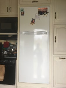 We had discussed a few years ago if our current RV refrigerator quit working, we would replace it with a residential one. However, we did like the option of using the propane to cool our refrigerator when not hooked to shore power. So, when our refrigerator ‘bit the dust’ just before leaving our summer job, we began looking at refrigerators that would work for us without spending over $2,000. Thankfully a friend of ours had recently completed a van conversion and had used a residential refrigerator so had knowledge about them. As I began throwing the food away that had spoiled, our friend began searching online for a refrigerator that would work within our budget. Amazingly she found one that she thought would fit in our space left by our RV refrigerator. We loaded up the truck and headed to Lowe’s a home improvement store. When we found the refrigerator that we had saw on the internet we quickly found that it was too small. Smaller than what we had before. So, feeling a bit defeated we began searching in the store. Then….. Ed found a much larger one, measured the overall size and wha-la that was IT!