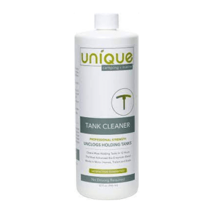 Your kitchen gray tank needs a good flush now and then too. Food particles from washing dishes can collect in the bottom of your gray tank. It’s essential to fill up your gray tank regularly to flush it out. You don’t want rotting food particles sitting in your gray tank. That can lead to smells that could even compete with black tank odors. We suggest adding this cleaner to your list of items of must haves. This cleaner states that it is specifically for your Black Tank but we use it for all our tanks to keep them fresh. Tank Cleaner by Unique. We are not sponsored by the company. We just love their products for all of our tanks.